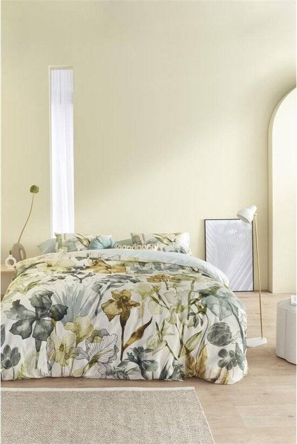 Dekbedovertrek Iris Field Grey Green 100% katoen satijn. Glanzend en luxe. Extra lange instopstrook.