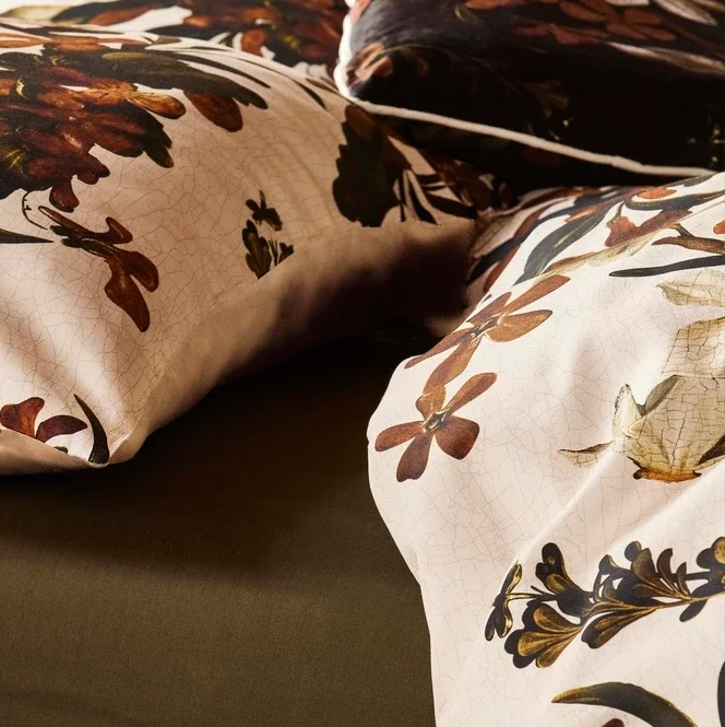 Dekbedovertrek Daffodils Reunited Beachwood white. 100% katoen satijn, glanzend en luxe. Extra lange instopstrook